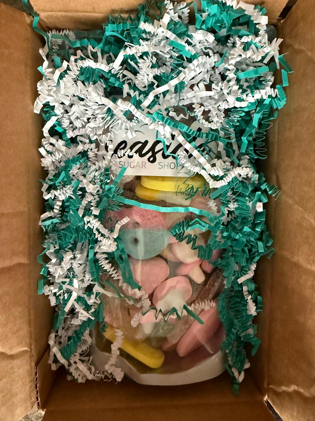 INGREDIENTS: Sugar, glucose-fructose syrup, corn starch, water, acidity regulators (malic acid, sodium citrate), potato protein, flavours, Colours (E100).